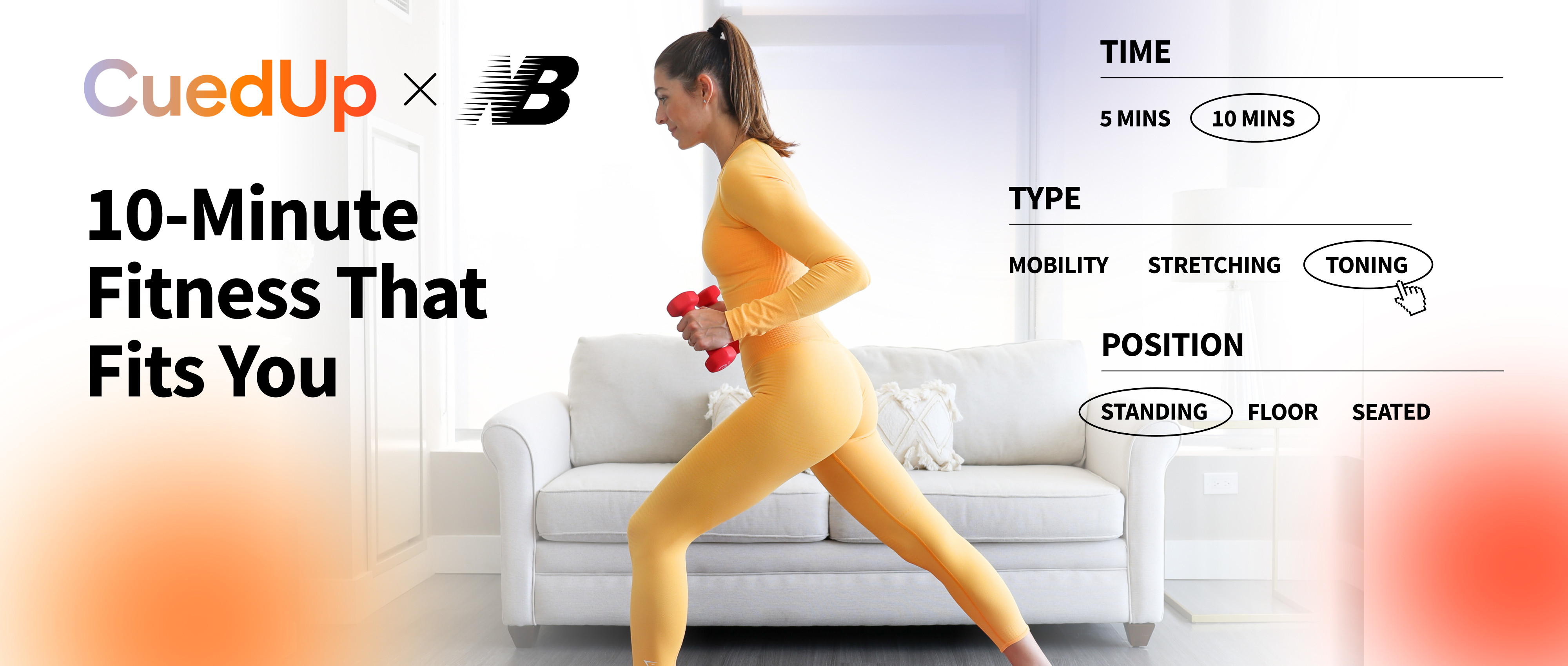 CuedUp at New Balance offers a customized fitness program that fits seamlessly into your routine, supporting all fitness levels and goals. Their expert approach focuses on three key areas: toning for strength, stretching for flexibility, and mobility for improved movement. Whether you're an athlete aiming to enhance performance, a beginner looking for motivation, or simply want to feel better in daily life, Cued Up has you covered. With flexible workout options, you can use Cue Creator to choose the duration, modifications, and target areas that suit your needs.